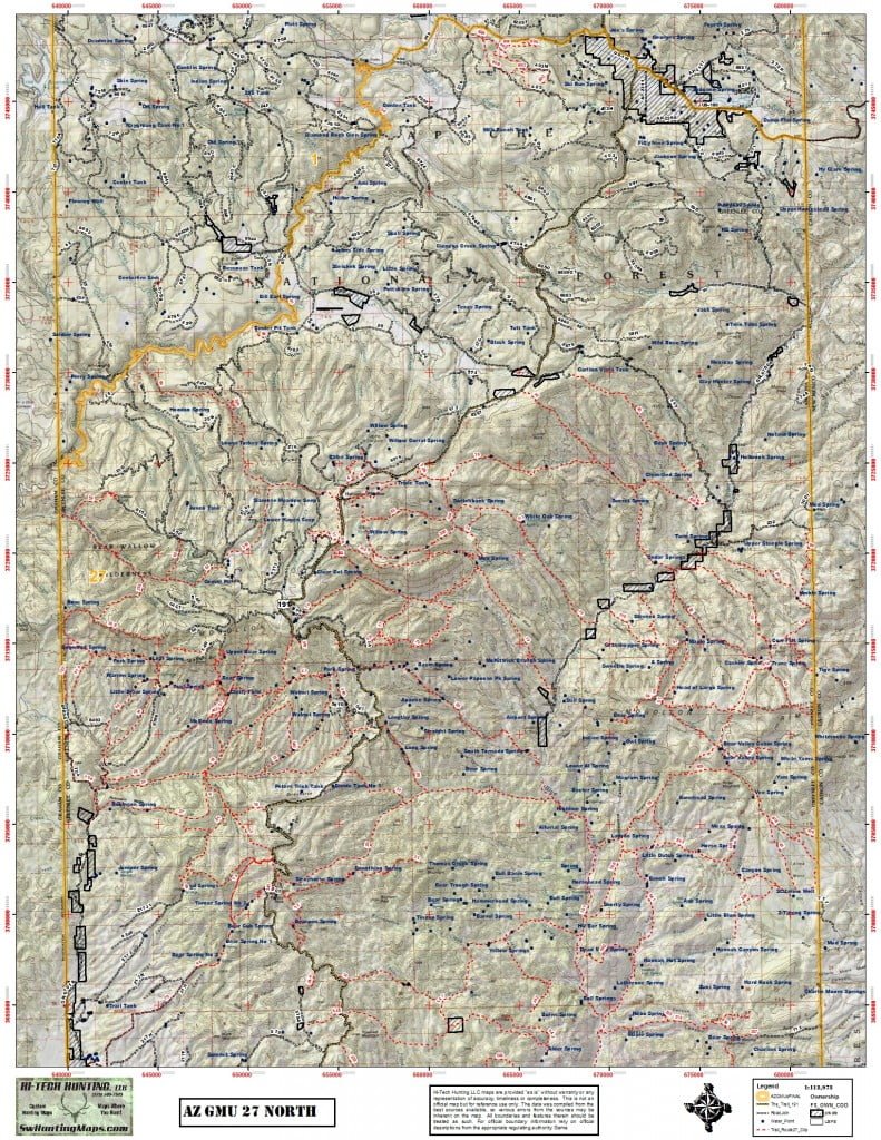 We make posters too! This poster is a 17″x22″ at a scale perfect for the hunter scouting a new GMU. No unfolding and refolding a huge map just to see where access is etc. It also has overlayed layers such as roads, trails, springs, water improvements and the resolution is sufficient to understand the terrain. Oh, we customize each map to have as much map as possible while maintaining a scale that is useful, and a copy can be on your phone for use in the Avenza app for real-time GPS!. You wont find advertisements and such on our maps.